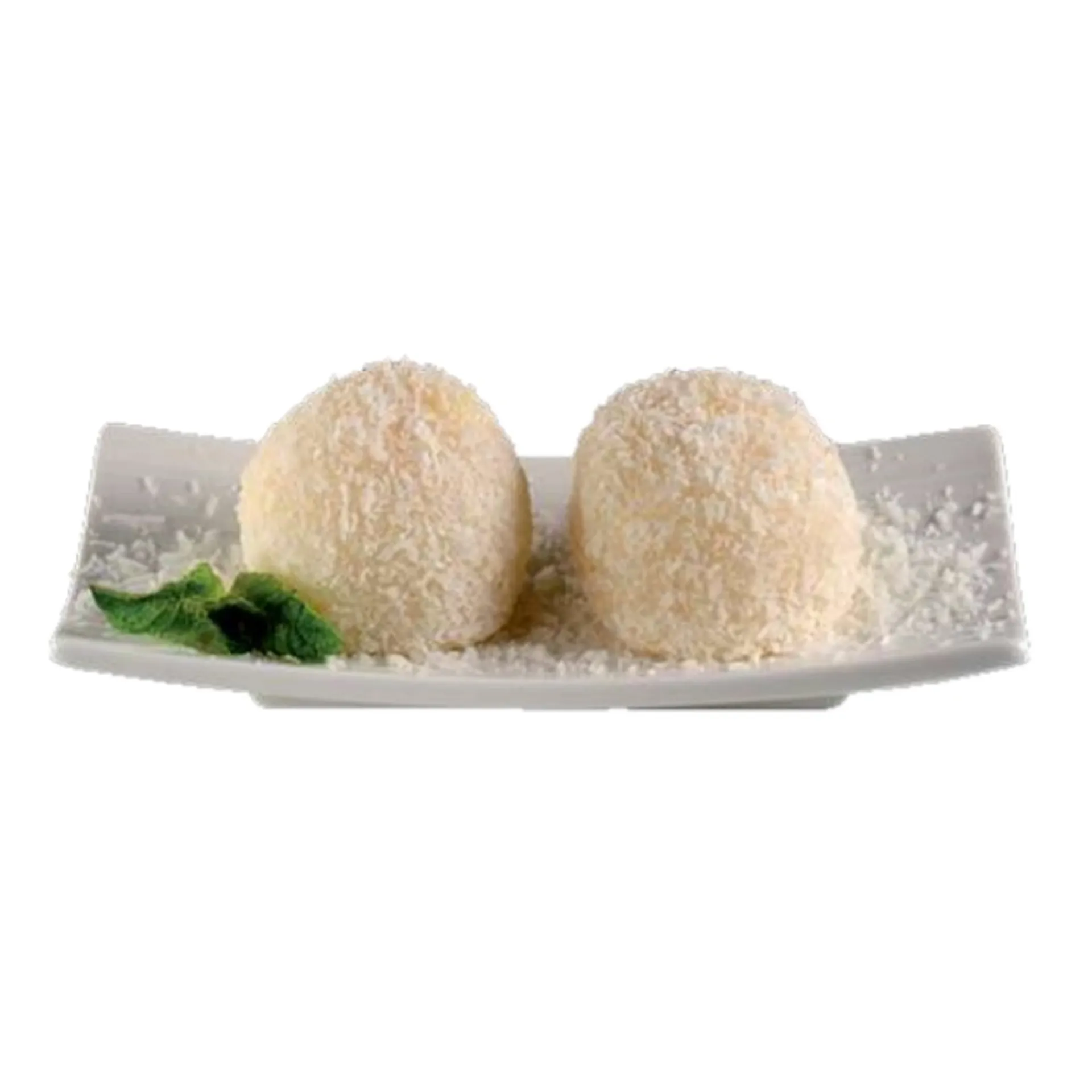 Ces boules rondes à la noix de coco sont préparées avec une pâte douce et fondante, légèrement sucrée, et renferment un cœur fondant parfumé qui se révèle à la dégustation. Servies légèrement chaudes, elles offrent une texture moelleuse et fondante à souhait, idéale pour un dessert réconfortant et parfumé.
